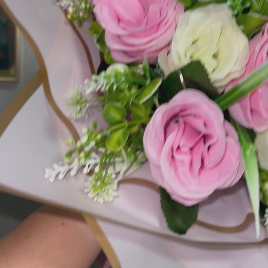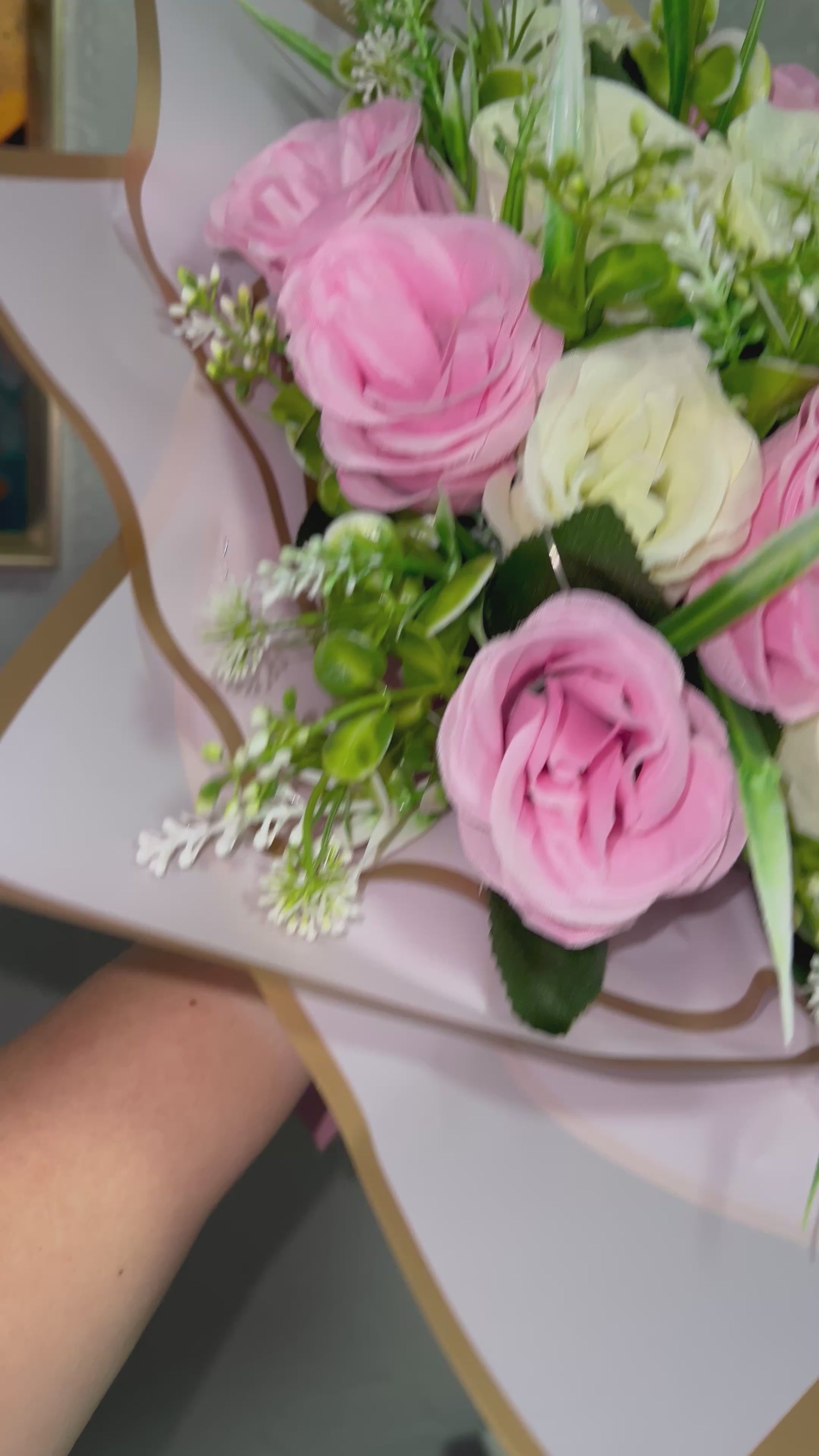 Bring timeless beauty into your home or gift someone special with this exquisite handcrafted artificial flower bouquet. Designed with a delicate blend of soft pink and cream blooms, lush greenery, and fine detailing, this arrangement offers everlasting elegance that never fades.