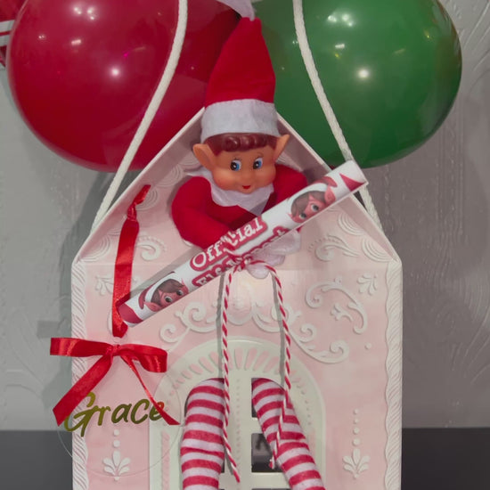 “I’m Back” Christmas Elf Balloon Gift Box | Personalised Holiday Return Display with inflated balloons