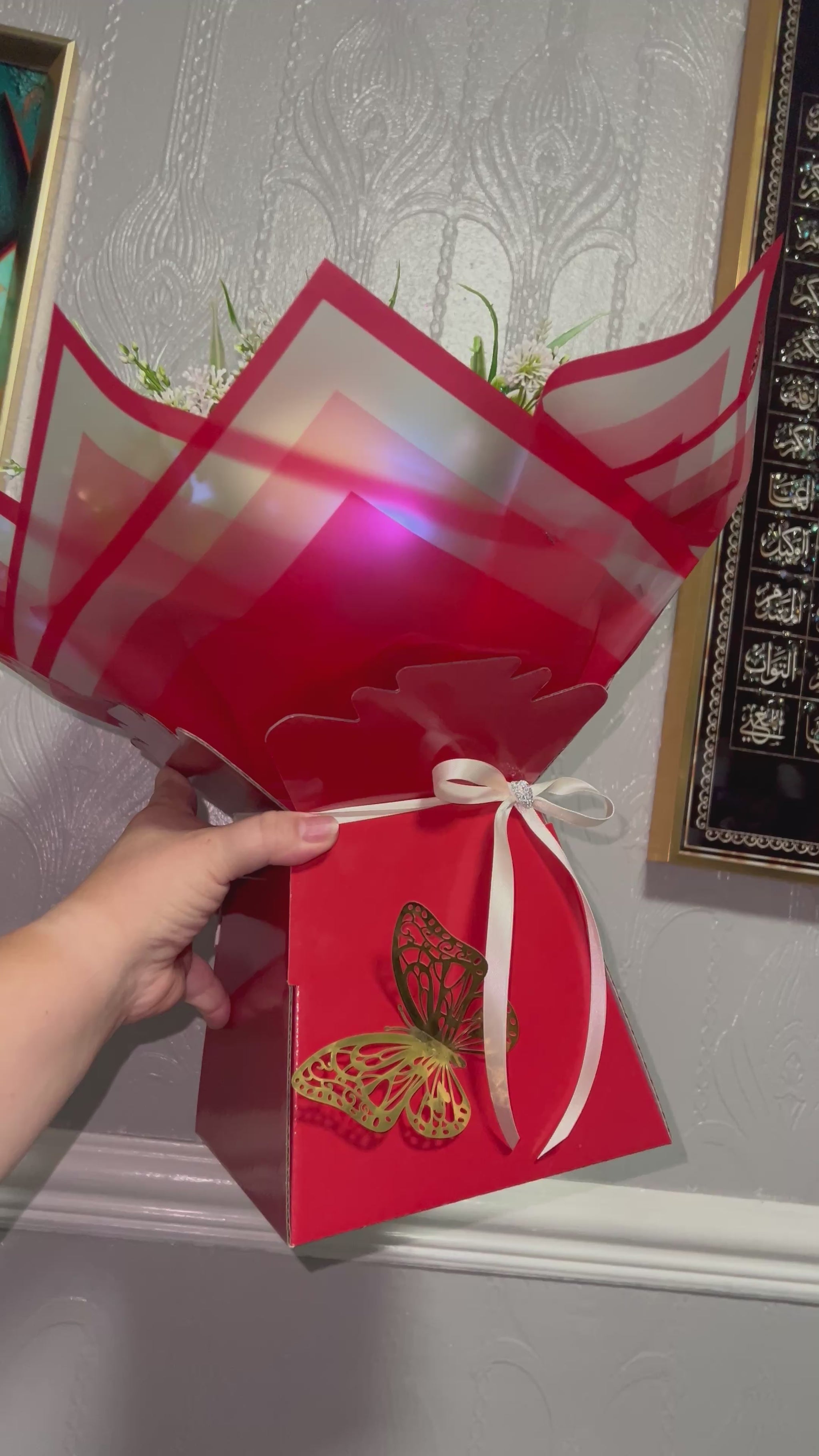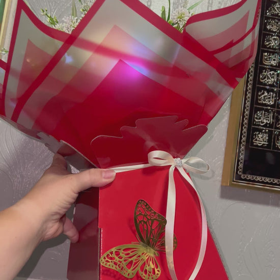 Presented in a luxurious red gift box adorned with a satin ribbon and a gold butterfly accent, this bouquet makes the perfect gift for her, whether it’s for an anniversary, Valentine’s Day, birthday, or just to show appreciation.
